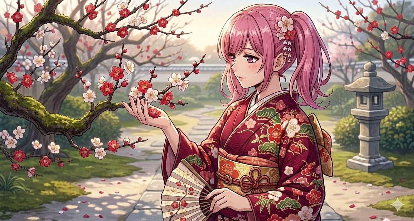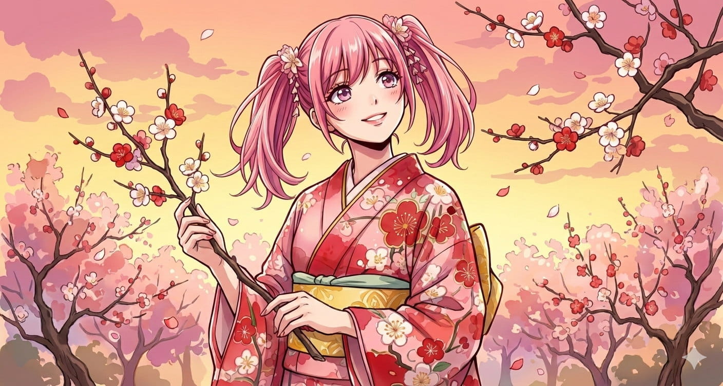 『Web漫画100』の春のイラスト作品です。テーマは「梅」です。