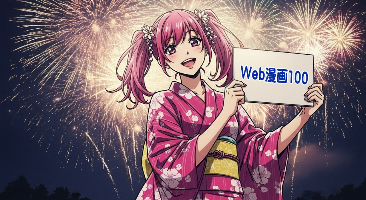 illust-214 夏の作品 夏の作品 2018.06.012026.01.15 別バージョン 花火大会・輝く笑顔 『Web漫画100』のホームページのヘッダー画像(夏用)、お知らせ用の作品です。 イラストのキャラは、『Web漫画100』の所属キャラクターです。 季節の行事・イベントに登場する隠れキャラクターです。