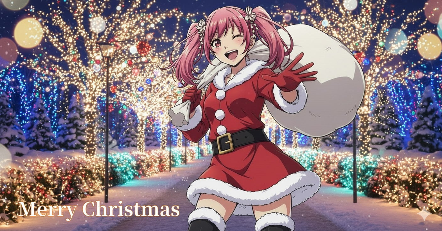 illust-612 冬の作品 イラスト 2025.12.252026.01.15 メリークリスマス・ウィンク 『Web漫画100』のホームページのヘッダー画像(クリスマス用)、お知らせ用の作品です。 イラストのキャラは、『Web漫画100』の所属キャラクターです。 季節の行事・イベントに登場する隠れキャラクターです。